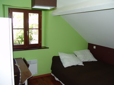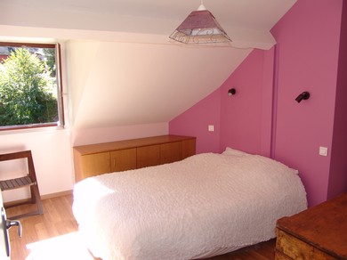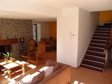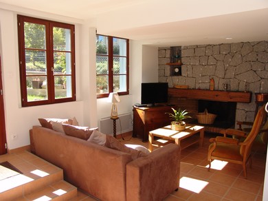 Au rez de chaussée : séjour avec cheminée, canapé convertible (160), TV, lecteur DVD, WIFI.