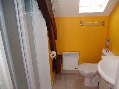 A l'étage : 3 chambres avec lits 140; 1 salle de bains, douche WC ; 1 salle de bains avec douche.